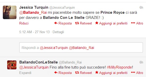 Dalla prima puntata della nuova edizione di Ballando Con Le Stelle sul web si parla solo di una certa ospitata di Prince Royce per presentare il suo nuovo album "Soy El Mismo" che ha raggiunto la top10 di iTunes Italia e vede la partecipazione di Selena Gomez per il brano "Already Missing You". Questo pomeriggio la conduttrice del programma di Rai 1 Milly Carlucci ha risposto suTwitter ad alcune domande lasciate dai fan, alla domande se Prinxe Royce ci sarà davvero a Ballando Con Le Stelle, Milly risponde "Fino alla fine tutto può succedere", la finale è prevista per il 7 dicembre Prince Royce sarà super ospte della finale?